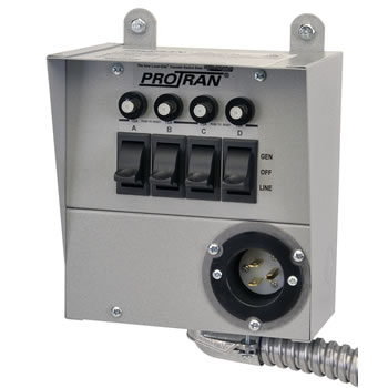 Easy to install and operate, connects portable generator to residential load center. Allows manual transfer of individual loads to prevent overloading generator. Each individual circuit can be transferred separately and only as needed. Now required by Article 702.6 of the 2002 National Electric Code to prevent inadvertent backfeeding of electric power from generator into utility system which can be a safety hazard.