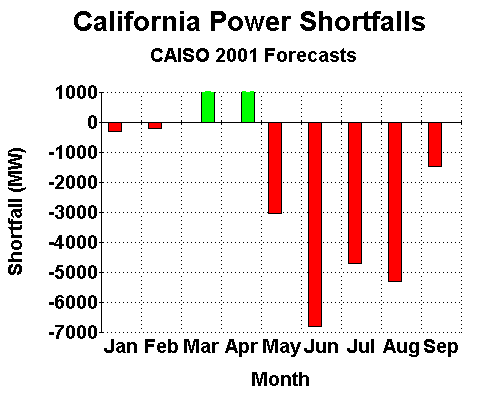 major electricity shortfalls for most of the state from May through September. The