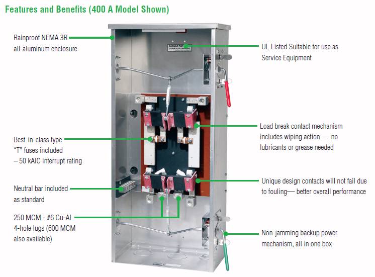 Best of all, its unique design load-break contact mechanism will not fail due to fouling, is non-jamming, includes a neutral bar and uses best-in-class type “T” fusing. (Other brands do not include the fuses and usually charge extra for the neutral kit.) Let us demonstrate how you can increase efficiency, stabilize power usage, and walk away at night knowing that all systems can operate reliably.