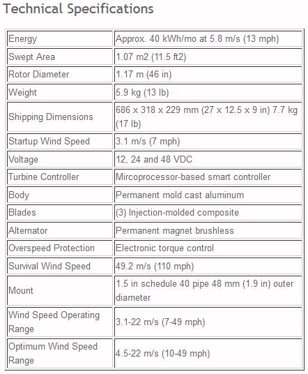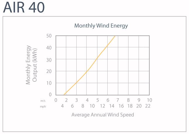 Produces 40 kWh of energy per month generating energy in a wide range of wind speeds5 year factory warranty. Made in USA