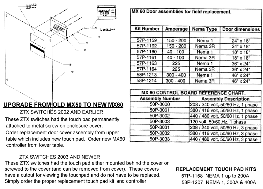 Controller - MX50 208/240V & other voltages 1&3 phase 50/60Hz | GE Zenith ZTX switches, pre 2003 | obsolete | substitute NATS22A universal controller | |