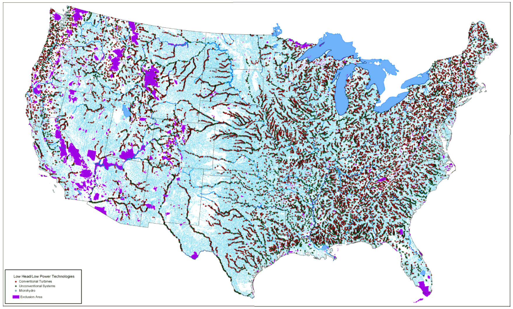 Click to View Information Description Low hear/low power water energy sites in the conterminous United States - Figure 12 from Water Energy Resources of the United States with Emphasis on Low Head/Low Power Resources (below)