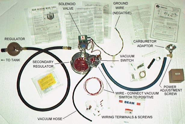 After kit is installed, to switch from gasoline to LPG all you do is close the gasoline tank outlet valve and run the engine until all the fuel is consumed from the line and carburetor. Then open the LPG valve and restart the engine. Some engine manufacturers may say that installing any modifications on an engine will void their warranty. However, this add-on kit does not really modify the engine, and can be completely removed if necessary.