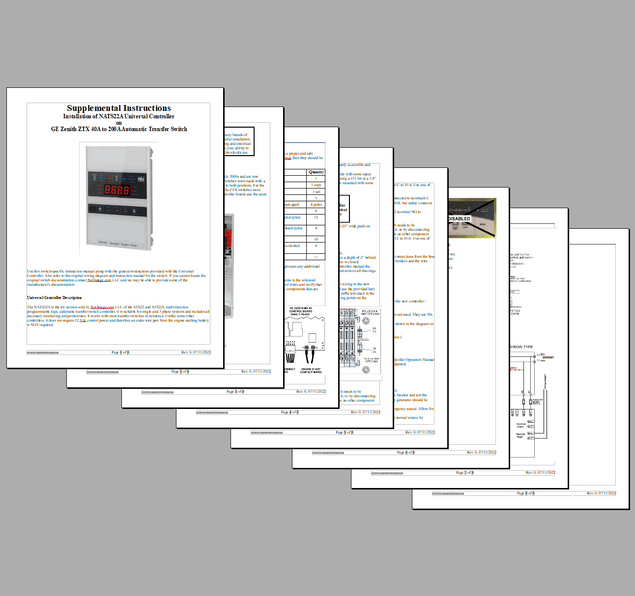 AS REPLACEMENT FOR GE ZENITH MX-50 AND MX-60 CONTROLLERSWhen the NATS22A is used as a replacement for the MX-50 (50P-2000) or MX-60 (P/N 50P-3000) controllers on an existing ZTX switch a summary of the installation steps would be as listed below. Switch specific step-by-step instructions can be provided with order to aid in identifying the wires and making the changes. If the controller is ordered with installation kit the following items will also normally be provided: control wire, butt splices and/or wire tap connectors, push-on connectors, wire ties, fuses and fuse holders. The NATS22A controller is considered an upgrade as compared to the MX-60 due to the additional sensing and adjustments available. However, the NATS22A does not have the R50 in-phase monitor capability used on 3-phase systems.