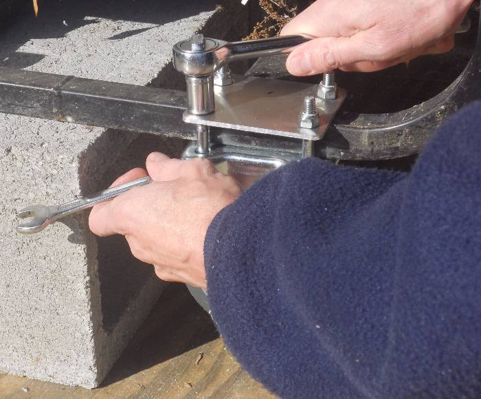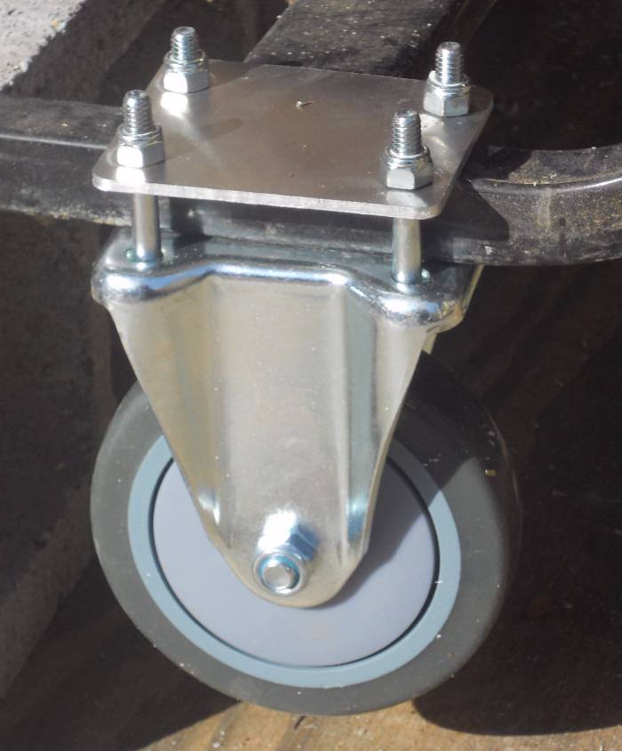 NOTE: New design uses flat metal plate and (4)straight bolts in place of (2)U-bolts for each caster.
