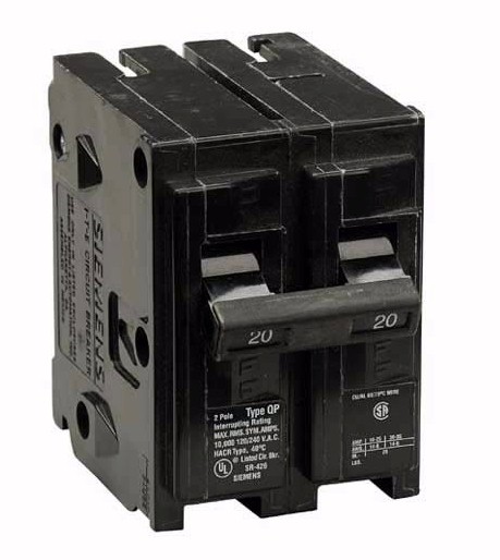 Molded case circuit breaker for Pro/Tran® Q-series manual transfer switches. Rated 120/240VAC, 20 amps, plug-on type, 2 inch interchangeable width. Short circuit interrupting rating 10,000 amps.