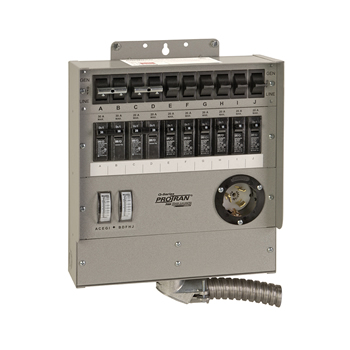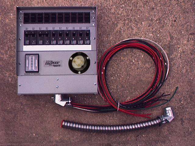 Easy to install and operate, connects portable generator to residential load center. Allows manual transfer of individual loads to prevent overloading generator. Each individual circuit can be transferred separately and only as needed. Now required by Article 702.6 of the 2002 National Electric Code to prevent inadvertent backfeeding of electric power from generator into utility system which can be a safety hazard.
