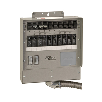 Easy to install and operate, connects portable generator to residential load center. Allows manual transfer of individual loads to prevent overloading generator. Each individual circuit can be transferred separately and only as needed. Now required by Article 702.6 of the 2002 National Electric Code to prevent inadvertent backfeeding of electric power from generator into utility system which can be a safety hazard.