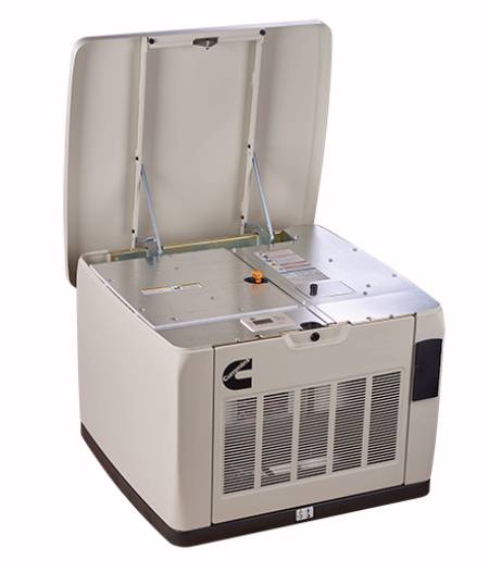 enclosure | hood open | with mounting pad | Cummins Power Videos | generator specs |