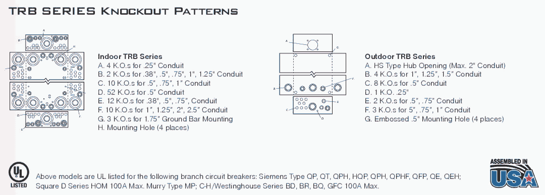 NOTE: Other breaker combinations between 20A and 125A are available by special order.