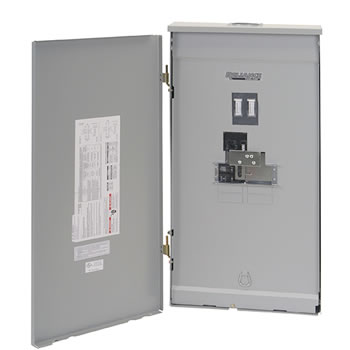 Standard features include NEMA 3R outdoor cabinet suitable for surface mounting, knockouts and hub provision for hard wiring and UL Listing. Service entrance rated which allows this to be connected directly to your power company meter. Provided with preinstalled main generator, 150 or 200 amp main utility breaker, with feed-thru lugs for connecting your load wiring. Also includes space for 4 to 8 single pole branch breakers or 2 double pole branch breakers. Meters for monitoring generator loading must be ordered separately and mounted external to this panel. Order inlet separately. Made in USA