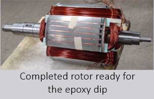 - The stators and rotors start the manufacturing process as raw stamped steel. The laminations are stacked, aligned, and welded. Each rotor shaft is turned in house before the rotor laminations are hydraulically pressed onto the shaft. All stator and rotor windings are wound with 100% copper wire and then epoxy dipped and baked to insulate the stator and rotor. The rotor is carefully balanced to ensure even rotation.